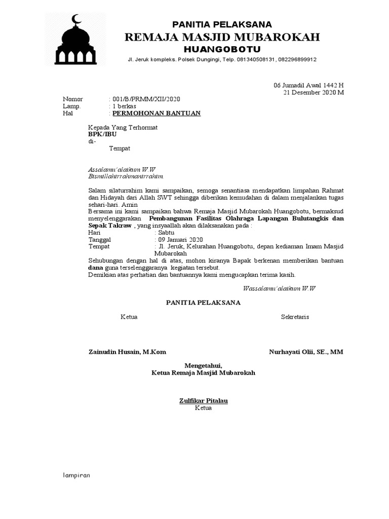 021-74765765 Jakarta 9. Kami selaku panitia memohon dukungan baik moral maupun. Permohonan Bantuan Dana Lamp.